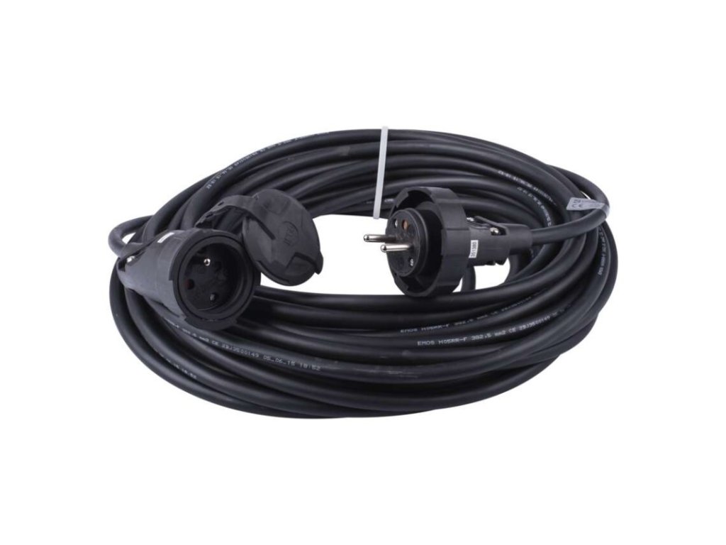 Venkovní prodlužovací kabel 20 m / 1 zásuvka / černý / guma / 230 V / 2,5 mm2