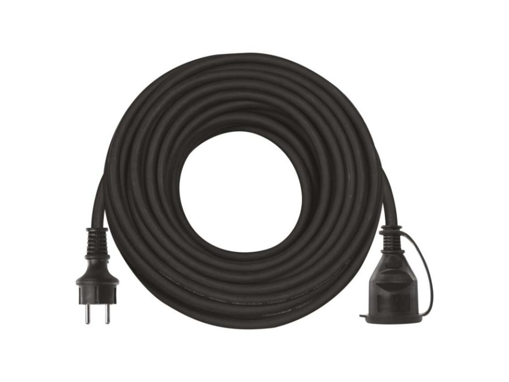 Venkovní prodlužovací kabel 20 m / 1 zásuvka / černý / guma-neopren / 230 V / 1,5 mm2