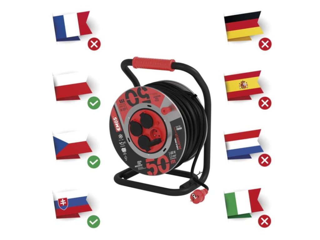 barva kabelu: černá|další funkce: vodící oko, brzda cívky|délka: 50 m|dětské clonky: ne|hmotnost: neuvádí se|krytí: IP44|max. zatížení navinutého: 4,35 A max./1 000 W|max. zatížení rozvinutého: 16 A max./3 680 W|napětí: 230 V~|počet zásuvek: 4|prodejní obal: 1 ks, krabice|produkt: buben s pohyblivým středem|proud: 16 A|průřez vodiče: 1,5 mm²|rozměr: 285 mm|tepelná pojistka: ano|typ izolace: guma/neopren|vodič: H07RN-F|záruční doba: 5 letDoplňkové parametry