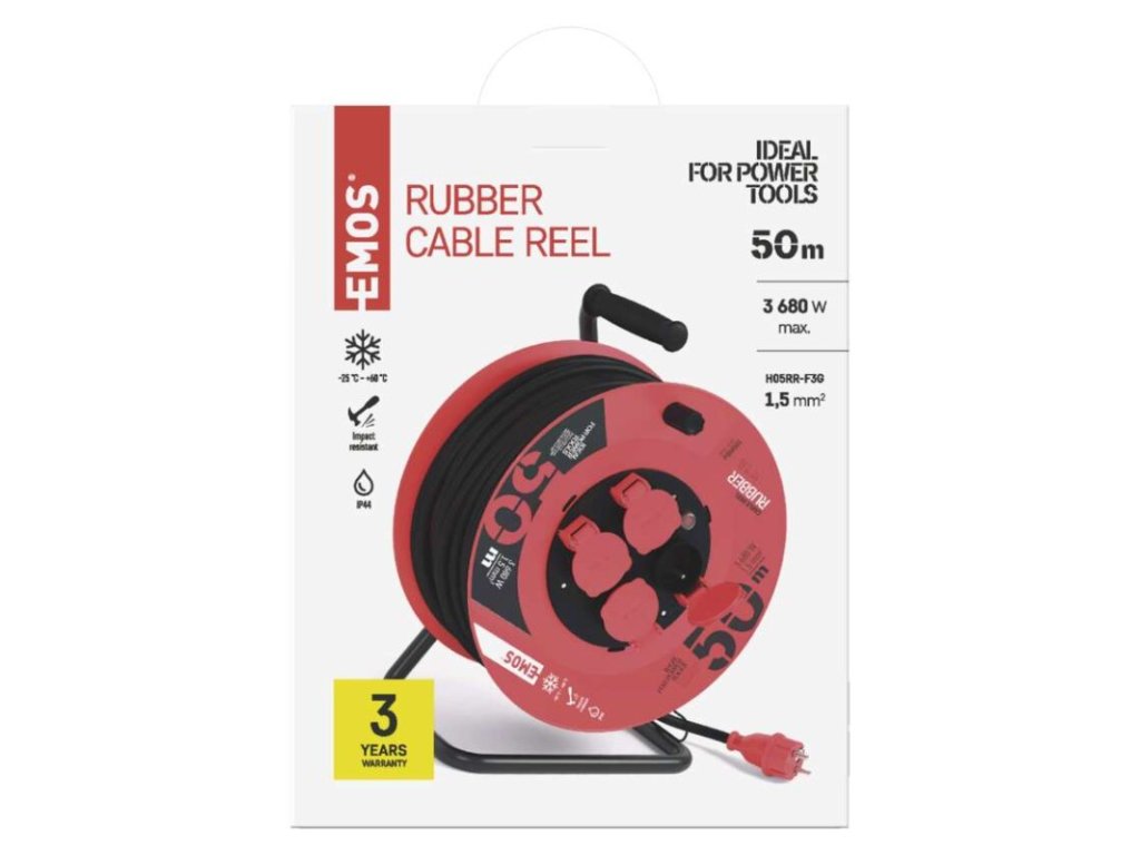 barva kabelu: černá|další funkce: ne|délka: 50 m|dětské clonky: ne|hmotnost: neuvádí se|krytí: IP44|max. zatížení navinutého: 4,8 A max./1 100 W|max. zatížení rozvinutého: 16 A max./3 680 W|napětí: 230 V~|počet zásuvek: 4|prodejní obal: 1 ks, krabice|produkt: buben s pohyblivým středem|proud: 16 A|průřez vodiče: 1,5 mm²|rozměr: 300 mm|tepelná pojistka: ano|typ izolace: guma|vodič: H05RR-F3G|záruční doba: 3 rokyDoplňkové parametry