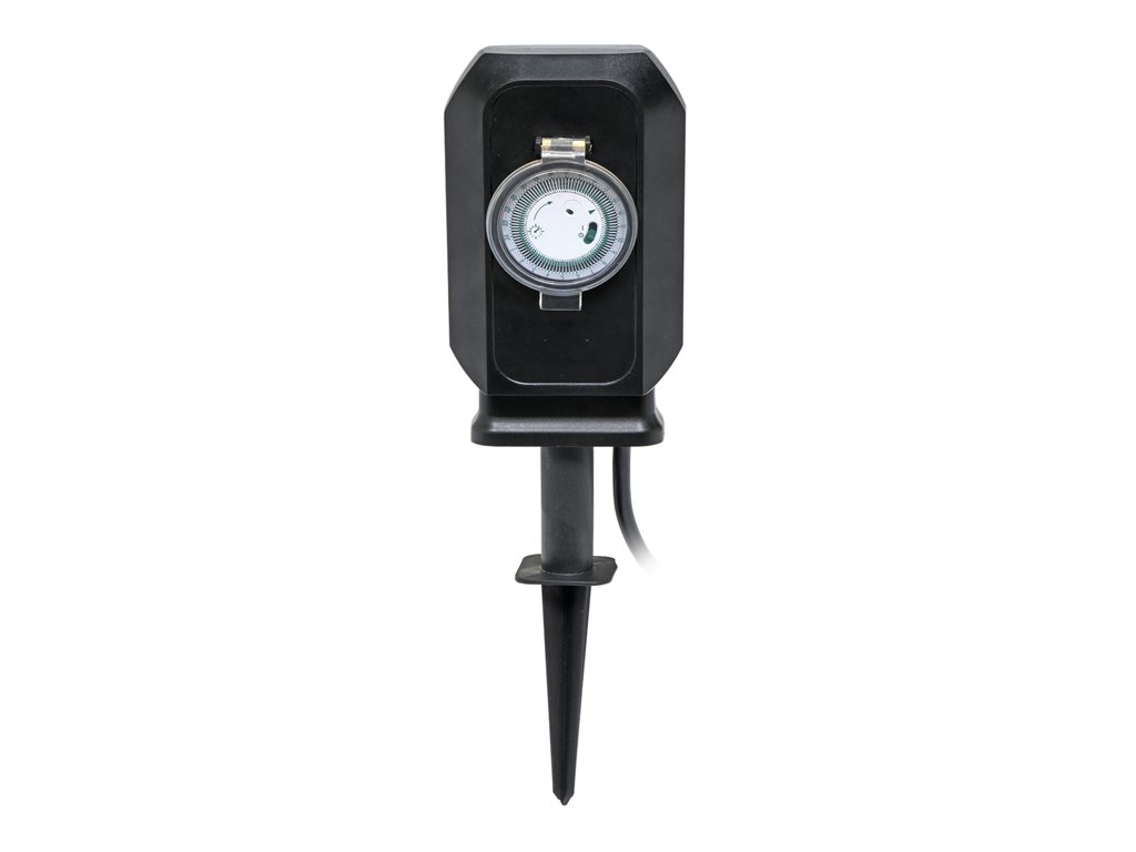 Praktický zahradní sloupek černé barvy s krytkami zásuvek je vhodný například pro připojení zahradní techniky. Je vybaven hrotem pro upevnění v zemi, disponuje 2 zásuvkami a časovačem. Kabel má 3 žíly s průřezem 1,5 mm2.Doplňkové parametry