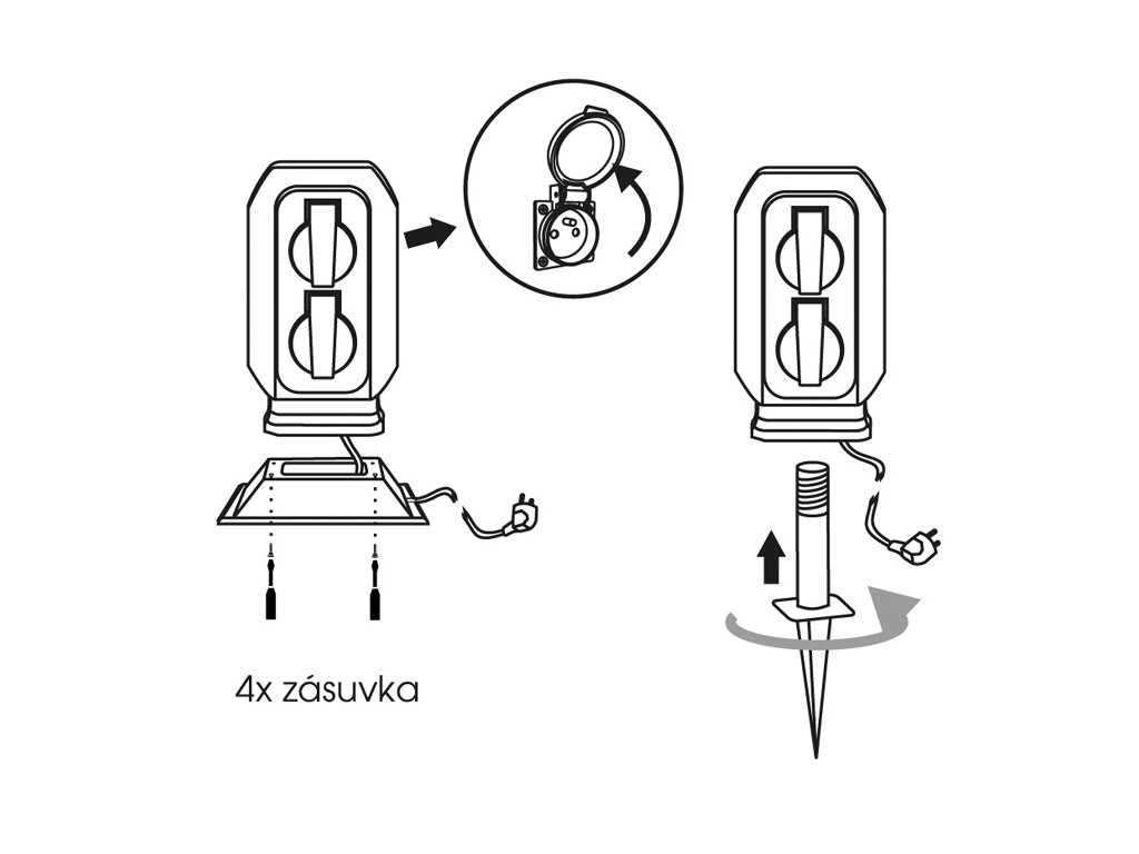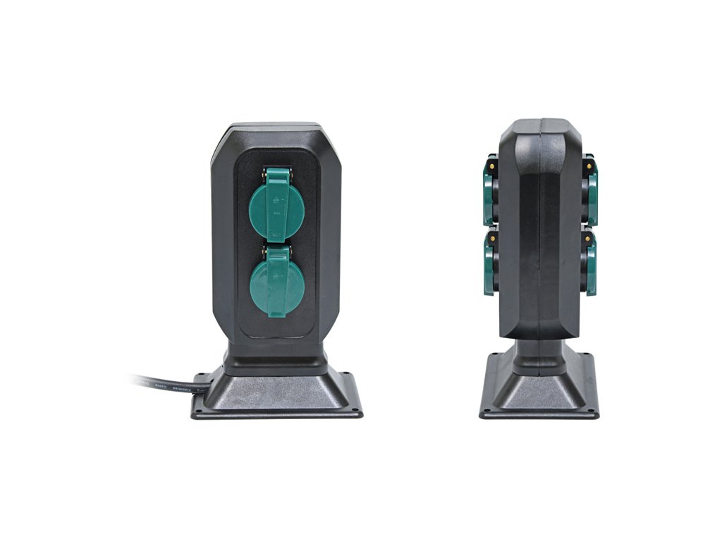 Praktický zahradní sloupek černé barvy s krytkami zásuvek je vhodný například pro připojení zahradní techniky. Je vybaven hrotem pro upevnění v zemi a disponuje 4 zásuvkami. Kabel má 3 žíly s průřezem 1,5 mm2.Doplňkové parametry